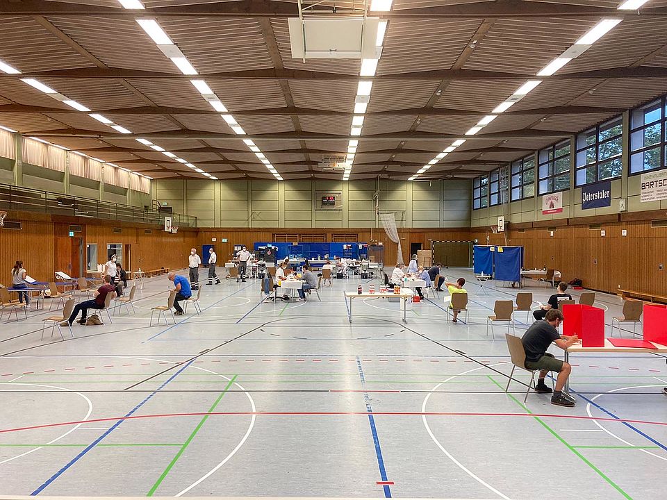 Viel Platz für Abstand und Hygienesicherheit bietet die Bundschuhhalle für unsere Blutspendeaktion in Pandemiezeiten. Die Online-Terminvergabe stellt zudem sicher, dass die Spendenwilligen sich gleichmäßig über den Spendenzeitraum verteilen. Dies verhindert längere Wartezeiten bei den einzelnen Stationen und gewährleistet eine zügige Abwicklung der Blutspende. So ging unsere Blutspendeaktion am vergangenen Mittwoch trotz der Zahl von insgesamt 133 Spendenwilligen ruhig und sicher über die Bühne. Bei nur fünf Rückstellungen konnten 128 Blutkonserven gewonnen werden. Erfreulich war die Zahl von 12 Erstspenderinnen und -spendern. Nach wie vor kann es keine Verpflegung vor Ort geben. Alternativ gab es für alle Spender/innen Maultaschen „to go“ in der Lunchtüte. Das DRK Untergrombach bedankt sich bei allen Spenderinnen und Spender für ihr Kommen und ihr Blut, dem DRK Blutspendeteam und natürlich bei unseren Helferinnen und Helfern. (wom)