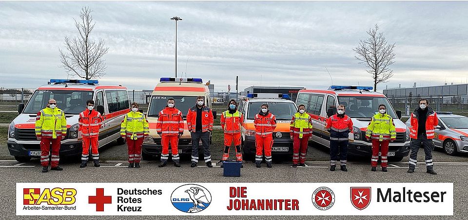 Die Hilfsorganisationen bedanken sich beim Einsatzstab Impfzentren der Branddirektion Karlsruhe und den Verantwortlichen des ZIZ für die gute und effektive Zusammenarbeit und einen gelungenen Start.