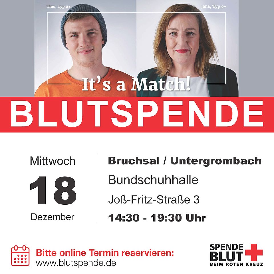 Der zweite Blutspendetermin 2024 findet in Untergrombach statt am